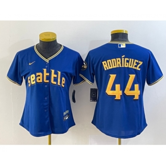 >Women's Seattle Mariners #44 Julio Rodriguez Blue 2023 City Connect Cool Base Stitched Jersey