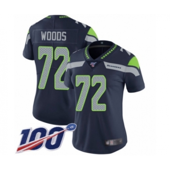 >Women's Seattle Seahawks #72 Al Woods Navy Blue Team Color Vapor Untouchable Limited Player 100th Season Football Jersey