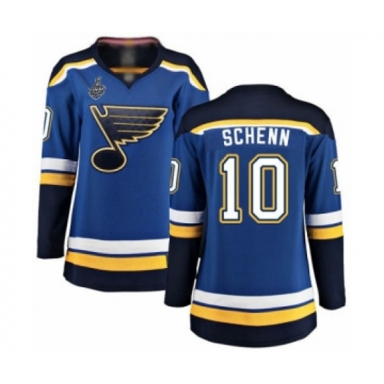 >Women's St. Louis Blues #10 Brayden Schenn Fanatics Branded Royal Blue Home Breakaway 2019 Stanley Cup Final Bound Hockey Jersey