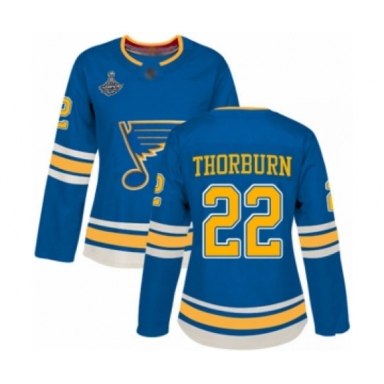 Women's St. Louis Blues #22 Chris Thorburn Authentic Navy Blue Alternate 2019 Stanley Cup Champions Hockey Jersey