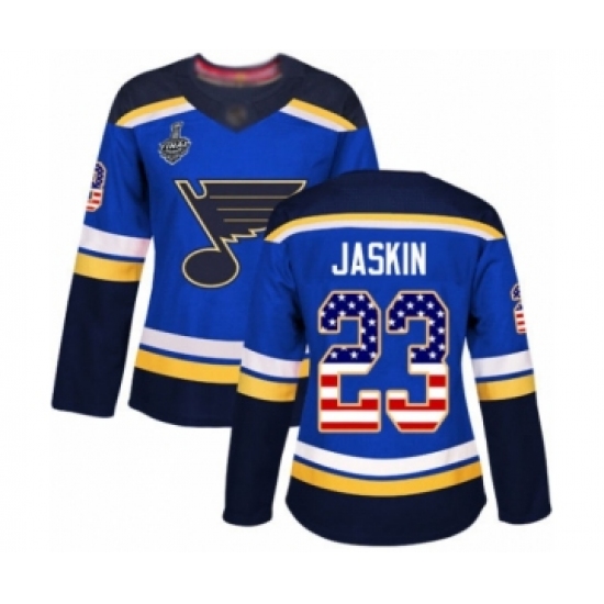 Women's St. Louis Blues #23 Dmitrij Jaskin Authentic Blue USA Flag Fashion 2019 Stanley Cup Final Bound Hockey Jersey