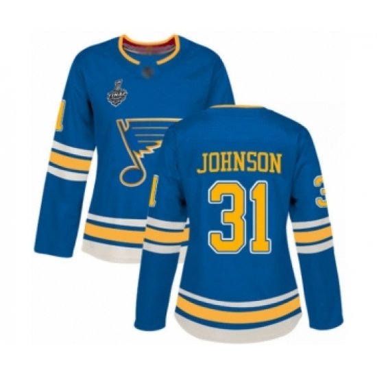 >Women's St. Louis Blues #31 Chad Johnson Authentic Navy Blue Alternate 2019 Stanley Cup Final Bound Hockey Jersey