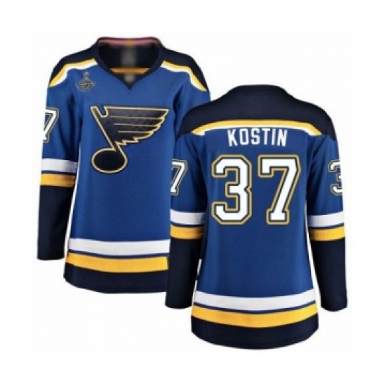 >Women's St. Louis Blues #37 Klim Kostin Fanatics Branded Royal Blue Home Breakaway 2019 Stanley Cup Champions Hockey Jersey