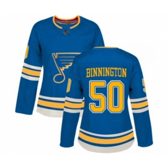 Women's St. Louis Blues #50 Jordan Binnington Authentic Navy Blue Alternate Hockey Jersey
