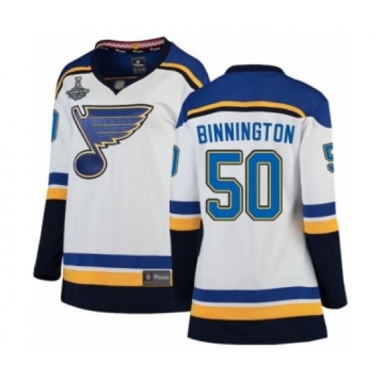 Women's St. Louis Blues #50 Jordan Binnington Fanatics Branded White Away Breakaway 2019 Stanley Cup Champions Ho