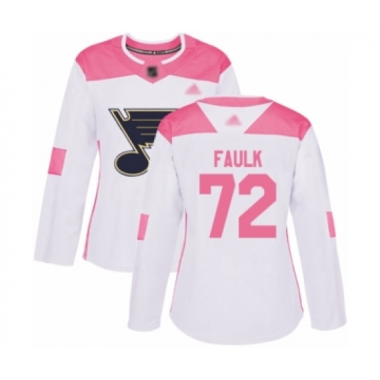 Women's St. Louis Blues #72 Justin Faulk Authentic White Pink Fashion Hockey Jersey