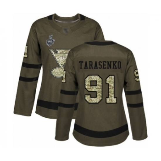 Women's St. Louis Blues #91 Vladimir Tarasenko Authentic Green Salute to Service 2019 Stanley Cup Final Bound Hockey Jersey