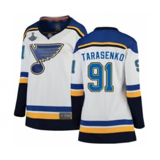 Women's St. Louis Blues #91 Vladimir Tarasenko Fanatics Branded White Away Breakaway 2019 Stanley Cup Champions Hockey Jersey