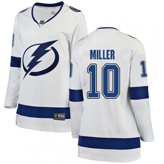 >Women's Tampa Bay Lightning #10 J.T. Miller Fanatics Branded White Away Breakaway NHL Jersey