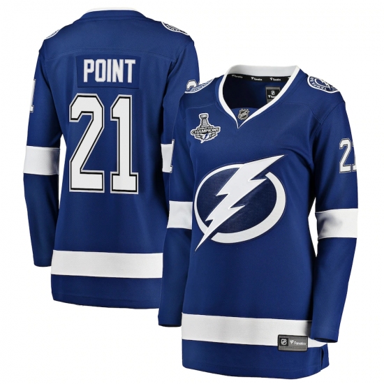 >Women's Tampa Bay Lightning #21 Brayden Point Fanatics Branded Blue Home 2020 Stanley Cup Champions Breakaway Jersey