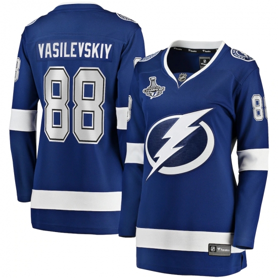 Women's Tampa Bay Lightning #88 Andrei Vasilevskiy Fanatics Branded Blue Home 2020 Stanley Cup Champions Breakaway Jersey