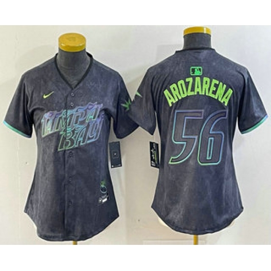 >Women's Tampa Bay Rays #56 Randy Arozarena Charcoal 2024 City Connect Limited Stitched Jersey