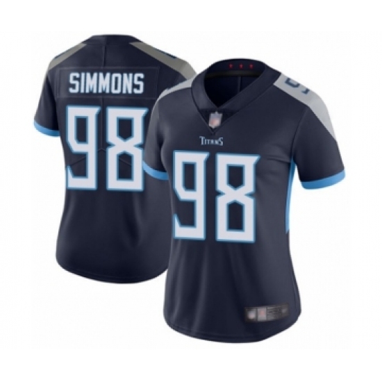 >Women's Tennessee Titans #98 Jeffery Simmons Navy Blue Team Color Vapor Untouchable Limited Player Football Jersey