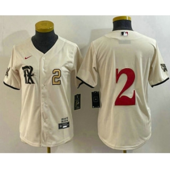 >Women's Texas Rangers #2 Marcus Semien Number Cream 2023 City Connect Stitched Baseball Jersey