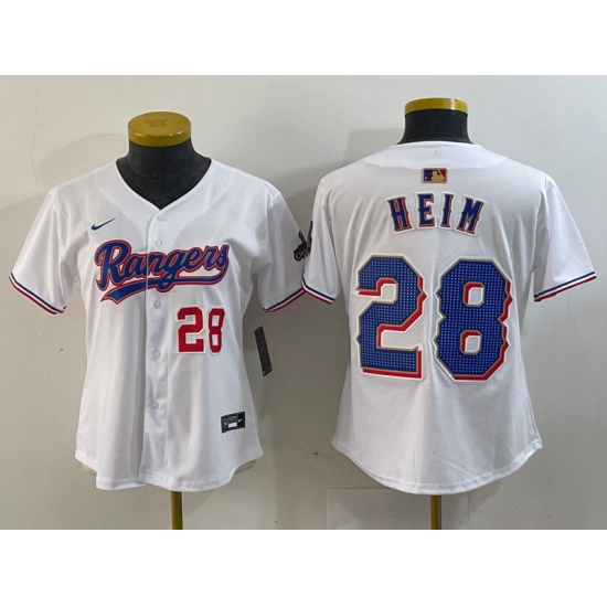 Women's Texas Rangers #28 Jonah Heim Number White 2023 World Series Champions Cool Base Jersey