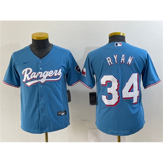 Youth Majestic Texas Rangers #34 Nolan Ryan Replica Royal Blue Alternate 2 Cool Base MLB Jersey