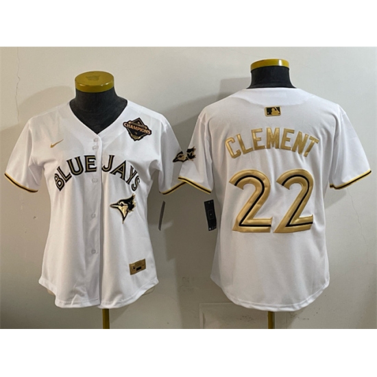 Women's Toronto Blue Jays #22 Ernie Clement White Gold 2025 American League Champions Limited Stitched Baseball Jersey(Run Small)