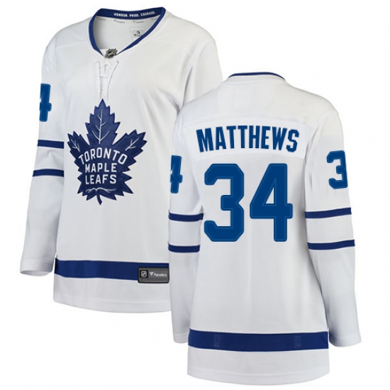 Women's Toronto Maple Leafs #34 Auston Matthews Authentic White Away Fanatics Branded Breakaway NHL Jersey