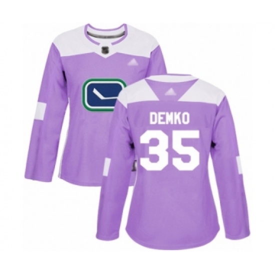 >Women's Vancouver Canucks #35 Thatcher Demko Authentic Purple Fights Cancer Practice Hockey Jersey