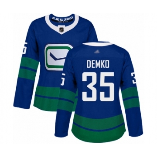 >Women's Vancouver Canucks #35 Thatcher Demko Authentic Royal Blue Alternate Hockey Jersey