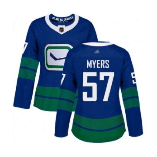 >Women's Vancouver Canucks #57 Tyler Myers Authentic Royal Blue Alternate Hockey Jersey
