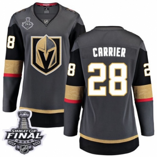 >Women's Vegas Golden Knights #28 William Carrier Authentic Black Home Fanatics Branded Breakaway 2018 Stanley Cup Final NHL Jersey
