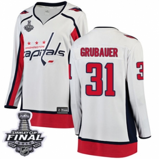 Women's Washington Capitals #31 Philipp Grubauer Fanatics Branded White Away Breakaway 2018 Stanley Cup Final NHL Jersey