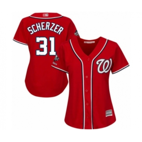 Women's Washington Nationals #31 Max Scherzer Authentic Red Alternate 1 Cool Base 2019 World Series Champions Baseball Jersey