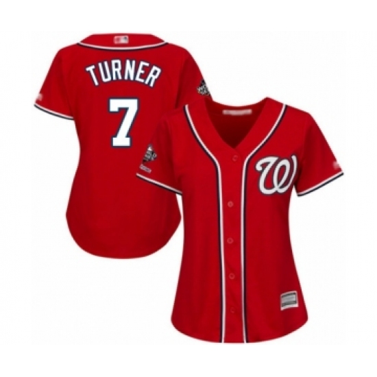 Women's Washington Nationals #7 Trea Turner Authentic Red Alternate 1 Cool Base 2019 World Series Champions Baseball Jersey