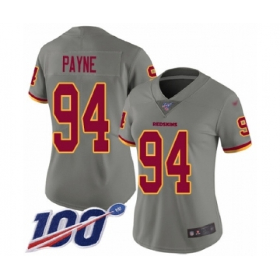>Women's Washington Redskins #94 Da'Ron Payne Limited Gray Inverted Legend 100th Season Football Jersey