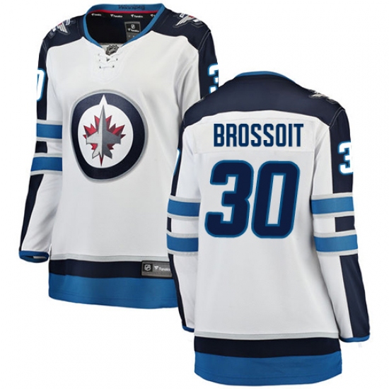 >Women's Winnipeg Jets #30 Laurent Brossoit Fanatics Branded White Away Breakaway NHL Jersey