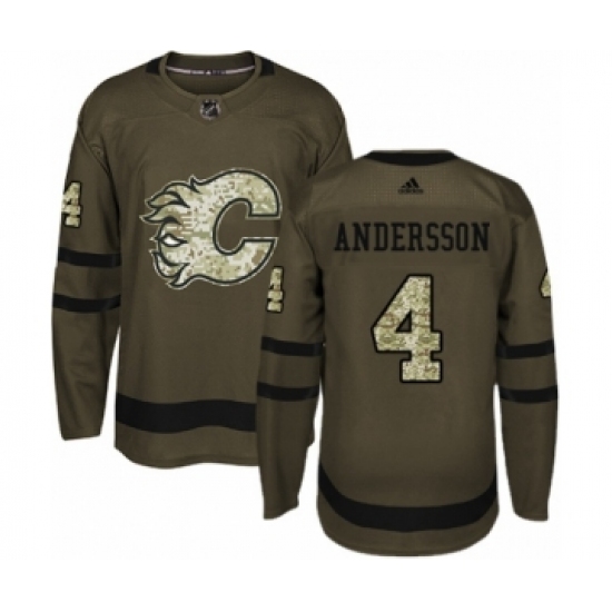 >Youth Adidas Calgary Flames #4 Rasmus Andersson Authentic Green Salute to Service NHL Jersey