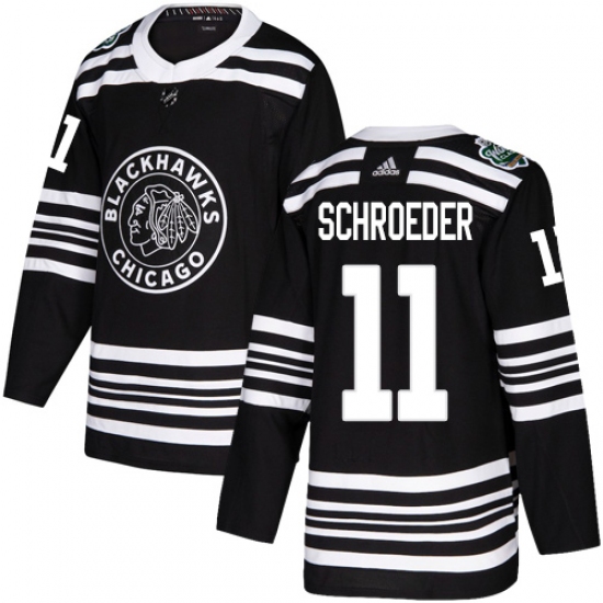 >Youth Adidas Chicago Blackhawks #11 Jordan Schroeder Authentic Black 2019 Winter Classic NHL Jersey