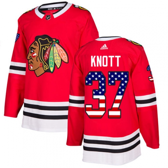 Home>NHL>Chicago Blackhawks>Graham Knott>Youth Adidas Chicago Blackhawks #37 Graham Knott Authentic Red USA Flag Fashion NHL Jersey