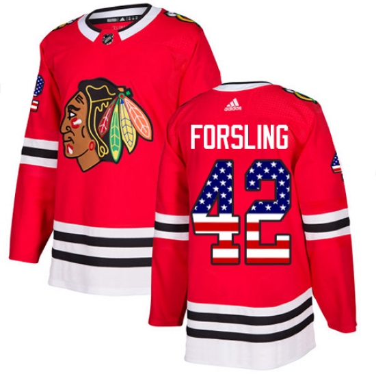 Home>NHL>Chicago Blackhawks>Gustav Forsling>Youth Adidas Chicago Blackhawks #42 Gustav Forsling Authentic Red USA Flag Fashion NHL Jersey