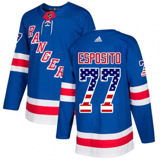 Home>NHL>New York Rangers>Phil Esposito>Youth Adidas New York Rangers #77 Phil Esposito Authentic Royal Blue USA Flag Fashion NHL Jersey