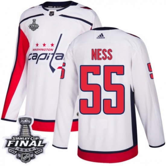 >Youth Adidas Washington Capitals #55 Aaron Ness Authentic White Away 2018 Stanley Cup Final NHL Jersey