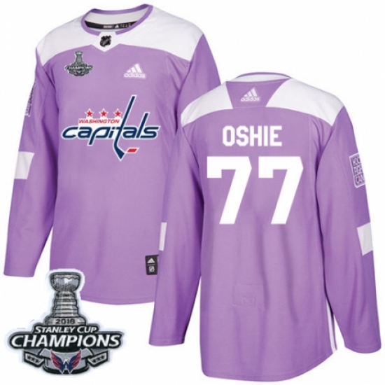 Women's Adidas Washington Capitals #77 T.J. Oshie Authentic Purple Fights Cancer Practice 2018 Stanley Cup Final Champions NHL Jersey