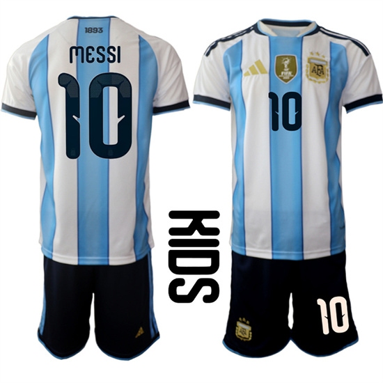>Youth Argentina #10 Lionel Messi National Team FIFA x World Cup 2026 Home White On Field Kids Jersey