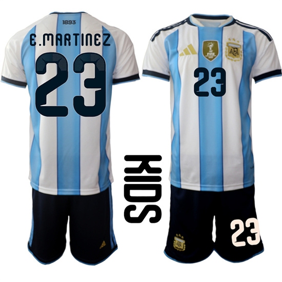 Youth Argentina #23 E.MARTINEZ National Team FIFA x World Cup 2026 Home White On Field Kids Jersey