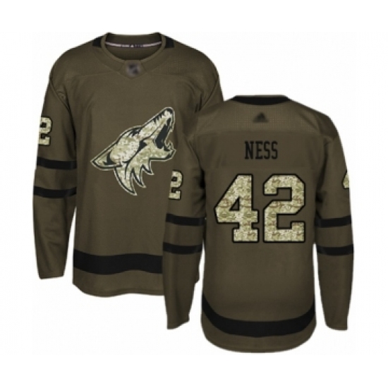 Youth Arizona Coyotes #42 Aaron Ness Authentic Green Salute to Service Hockey Jersey