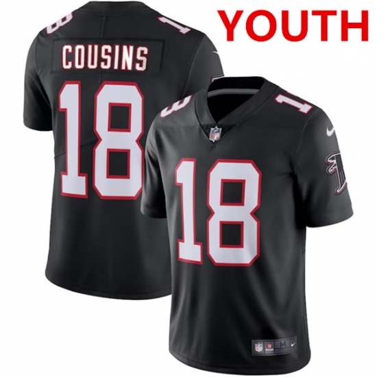 >Youth Atlanta Falcons #18 Kirk Cousins Black Vapor Untouchable Limited Stitched Jersey
