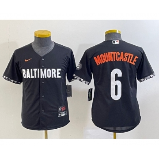 >Youth Baltimore Orioles #6 Ryan Mountcastle Black 2023 City Connect Cool Base Stitched Jersey