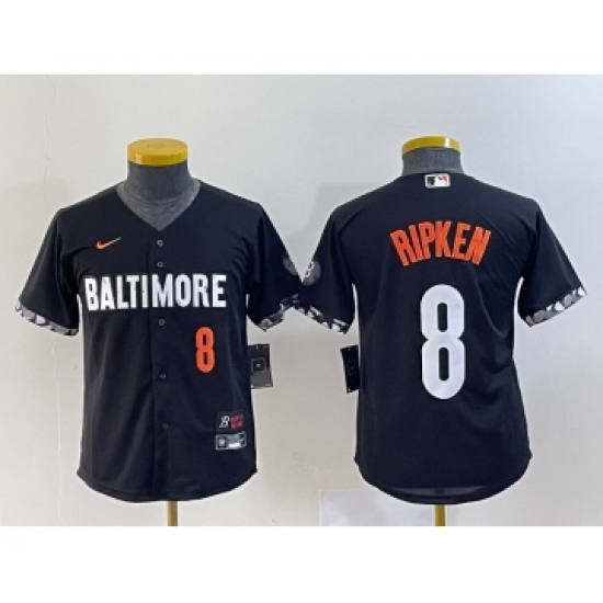 >Youth Baltimore Orioles #8 Cal Ripken Jr Number Black 2023 City Connect Cool Base Stitched Jersey 2