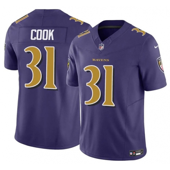>Youth Baltimore Ravens #31 Dalvin Cook Purple 2024 F.U.S.E. Color Rush Stitched Jersey