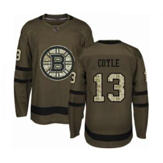 >Youth Boston Bruins #13 Charlie Coyle Authentic Green Salute to Service Hockey Jersey