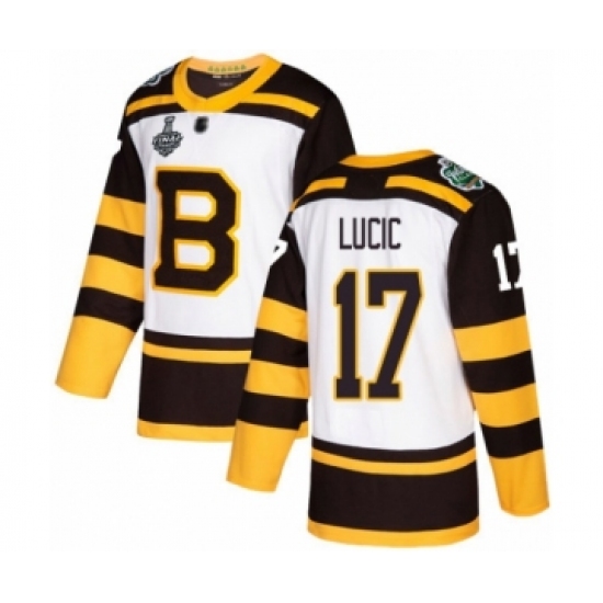 >Youth Boston Bruins #17 Milan Lucic Authentic White Winter Classic 2019 Stanley Cup Final Bound Hockey Jersey