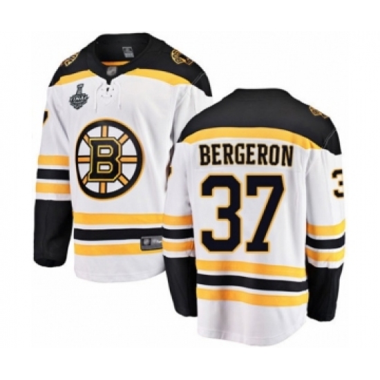 Men's Boston Bruins #37 Patrice Bergeron Authentic White Away Fanatics Branded Breakaway 2019 Stanley Cup Final Bound Hockey Jersey