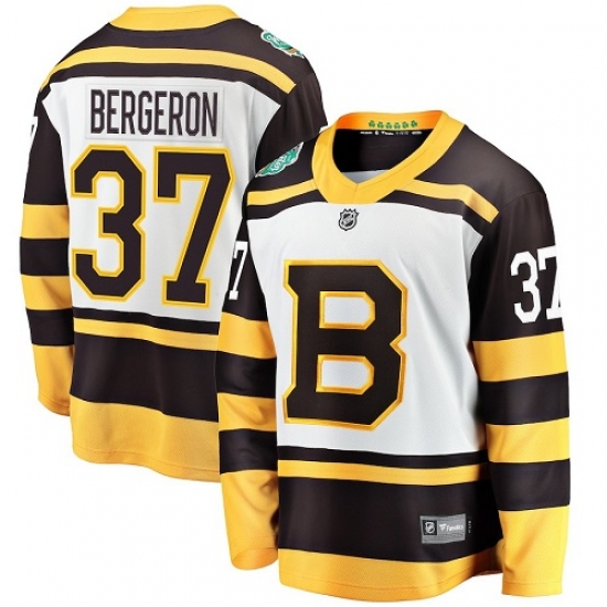 >Youth Boston Bruins #37 Patrice Bergeron White 2019 Winter Classic Fanatics Branded Breakaway NHL Jersey