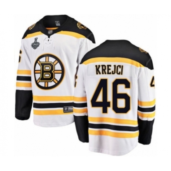 Youth Boston Bruins #46 David Krejci Authentic White Away Fanatics Branded Breakaway 2019 Stanley Cup Final Bound Hockey Jersey